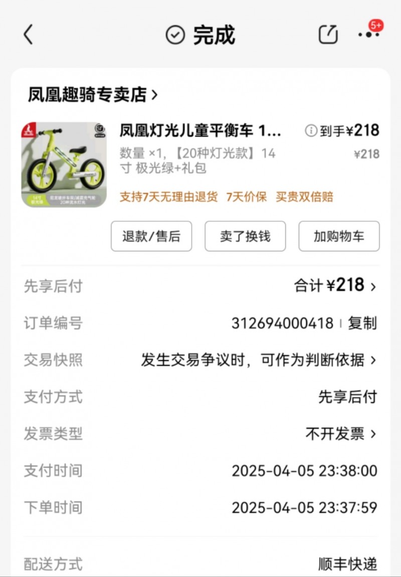 新买的平衡车凤凰的14寸为了叫孩子学会骑自行车,买的过度用车。才十来天了,现半价处理。