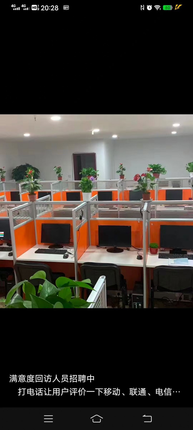 急招满意度回访人员工作内容:打电话做满意度回访,填写问卷。工作要求会普通话,会基础电脑,有耐心,认真即可,工作时间八小时8:30-5:30中午休息一个小时。薪资待遇:日工资月结,多劳多得轻松上手不会可以岗前培训,不外出,不推销,纯回访工作,想做的联系我