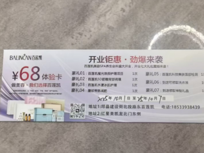 百莲凯 盛大开业现招聘 美容师数名 美甲美睫师 薪资待遇面议 底薪+提成+手工+奖金+公休 新店开业转发朋友圈集满18个赞可到店免费领取礼品一份且可以免费体验科技美肤一次 心动不如行动哦 活动时间10月1日-10月7日 地址1:邱县建设街北段路东百莲凯 地址2:红星美凯龙北门东侧